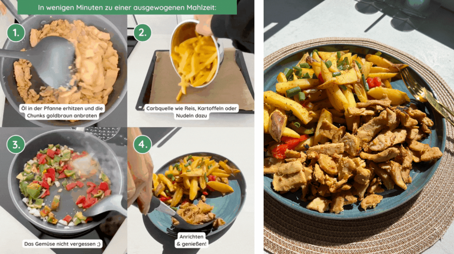 Fast so schnell wie ein Fertiggericht, nur viel gesünder und nährstoffreicher! Mit unserer Fleischalternative kannst du eine Vielzahl an Gerichten kochen, die dich fit halten!