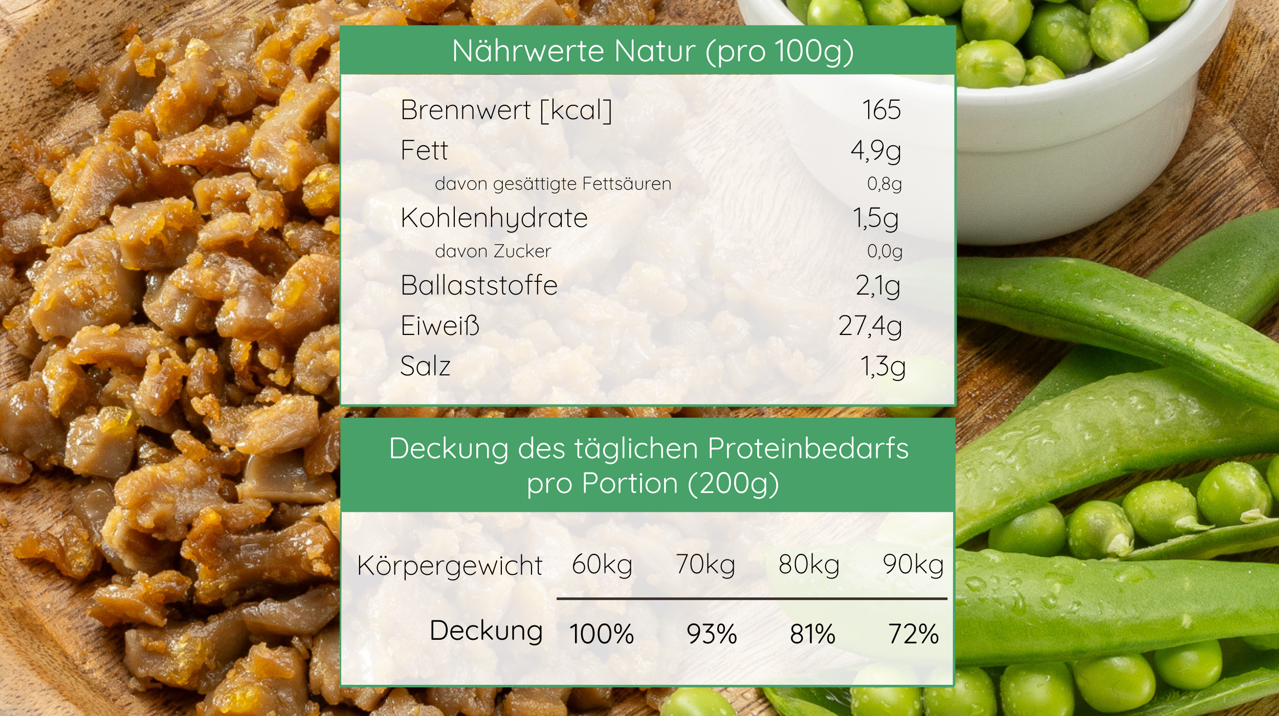 Bei solchen Nährwerten kannst du unsere Fleischalternative bedenkenlos mehrmals in der Woche oder sogar täglich essen - glaub uns, der köstliche Geschmack wird es dir leicht machen, dies zu tun.