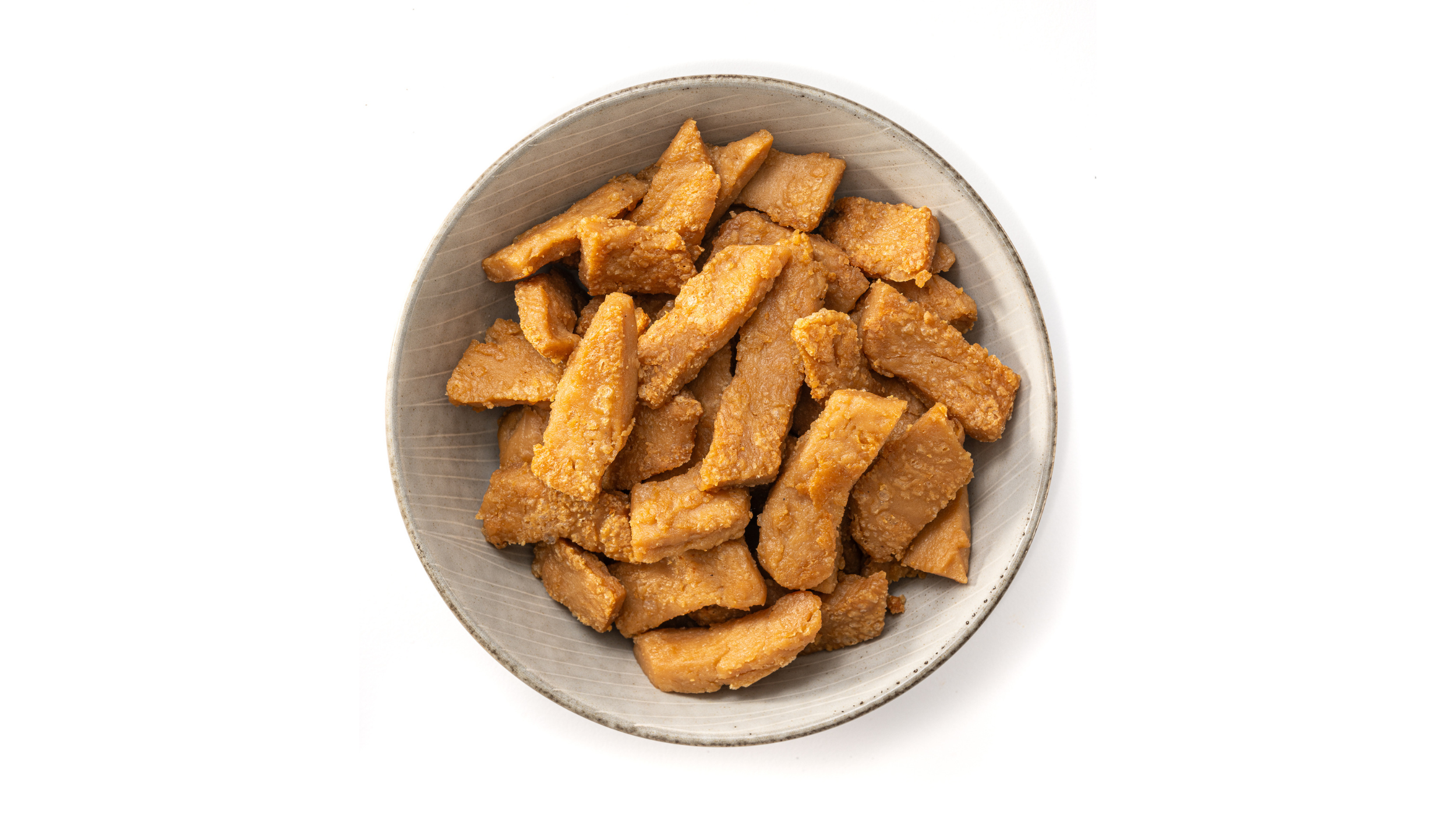 Endlich ein Fleischersatz, bei dem auf das Aminosäurenprofil geachtet wird. Geschmack und Konsistenz sind sehr gut. Ich mag die knusprige Oberfläche, welche die Chunks in der Pfanne entwickeln.